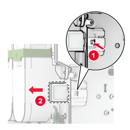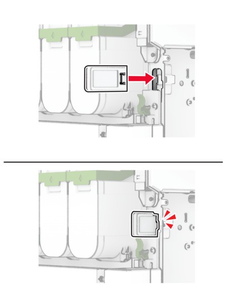 Pak de nieuwe draadloze afdrukserver uit.Voer de nieuwe draadloze afdrukserver tot dezevastklikt.