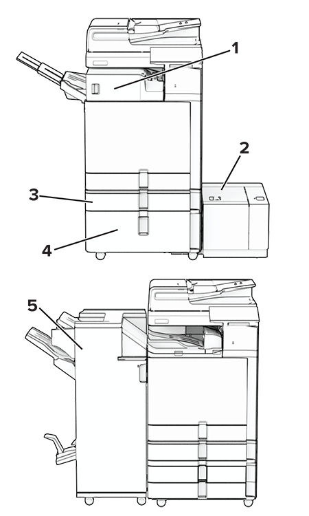 Instalacja jednej opcji lub większej ich liczby w drukarce lub urządzeniu wielofunkcyjnym MFP może wymagać zastosowania podstawy na kółkach, mebla lub innego elementu wyposażenia w celu uniknięcia niestabilności urządzenia, która mogłaby grozić uszkodzeniem ciała. Więcej informacji na temat obsługiwanych konfiguracji znajduje się na stronie www.lexmark.com/multifunctionprinters.