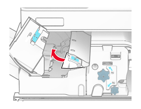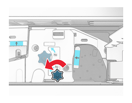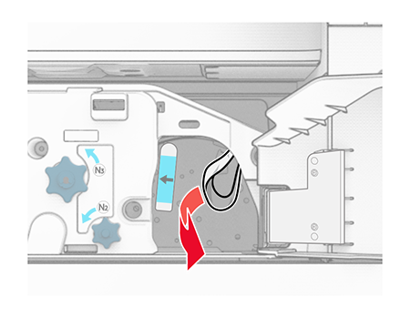 Zamknij uchwyt N5, a następnie zamknij uchwyt N4.Naciśnij uchwyt N1 w dół.