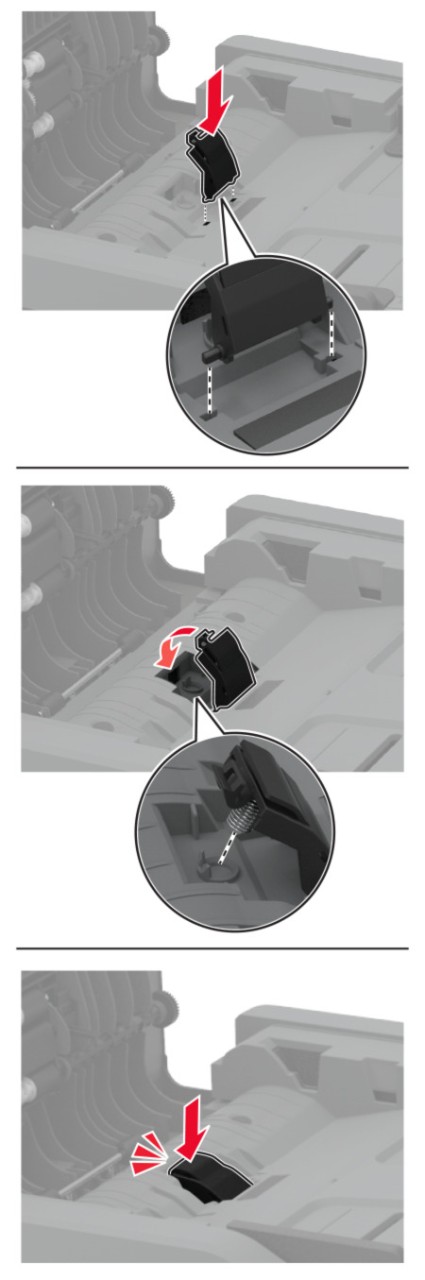 Rozpakuj nowy separator papieru podajnika ADF.Włóż nowy separator aż dozatrzaśnięciana swoim miejscu.