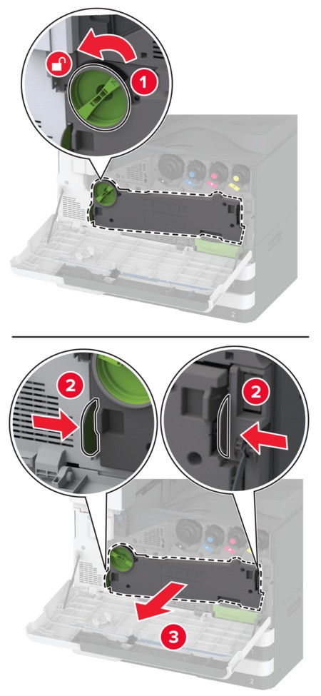 Wyjmij używany moduł przenoszenia zużytego tonera.