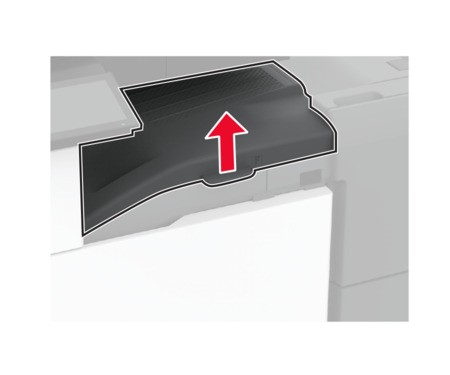 Zamknij pokrywę modułu transferu papieru F.Otwórz drzwiczki modułu wykańczającego do broszur.