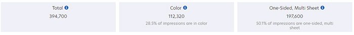 - Um lado, em várias folhas: mostra o número total de impressões impressas em um lado em duas ou mais folhas. Esses dados não incluem impressões impressas em uma única página.