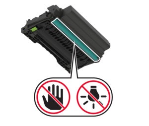Não exponha a unidade de criação de imagens à luz por mais de dez minutos. A longa exposição à luz pode causar problemas na qualidade de impressão.Não toque no cilindro fotocondutor. Fazer isso pode afetar a qualidade dos trabalhos de impressão futuros.