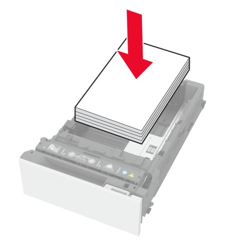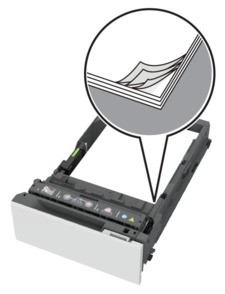 - Não deslize o papel na bandeja. Carregue o papel de acordo com a ilustração.