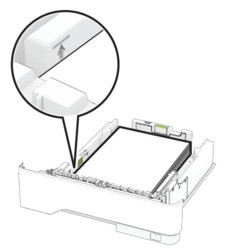 - Para evitar atolamentos de papel, certifique-se de que a altura da pilha de papel esteja abaixo dos indicadores de carregamento máximo de papel.