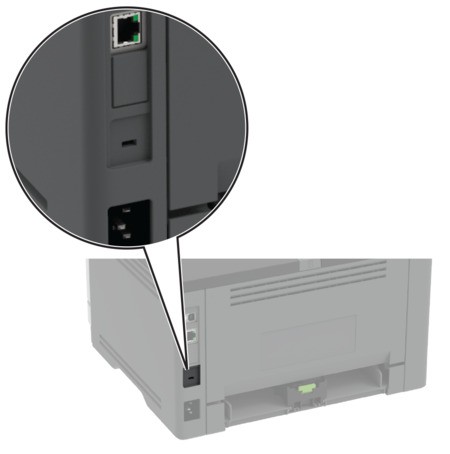 В принтере предусмотрена возможность установки замка безопасности. В указанном месте прикрепите замок безопасности, совместимый с большинством портативных компьютеров, чтобы защитить принтер.