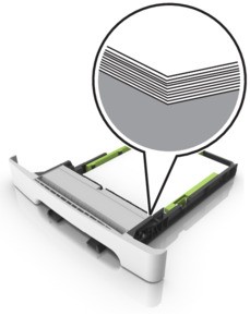 - Çok fazla kağıt yüklemeyin. Yığın yüksekliğinin maksimum kağıt doldurma göstergesinin aşağısında olduğundan emin olun.