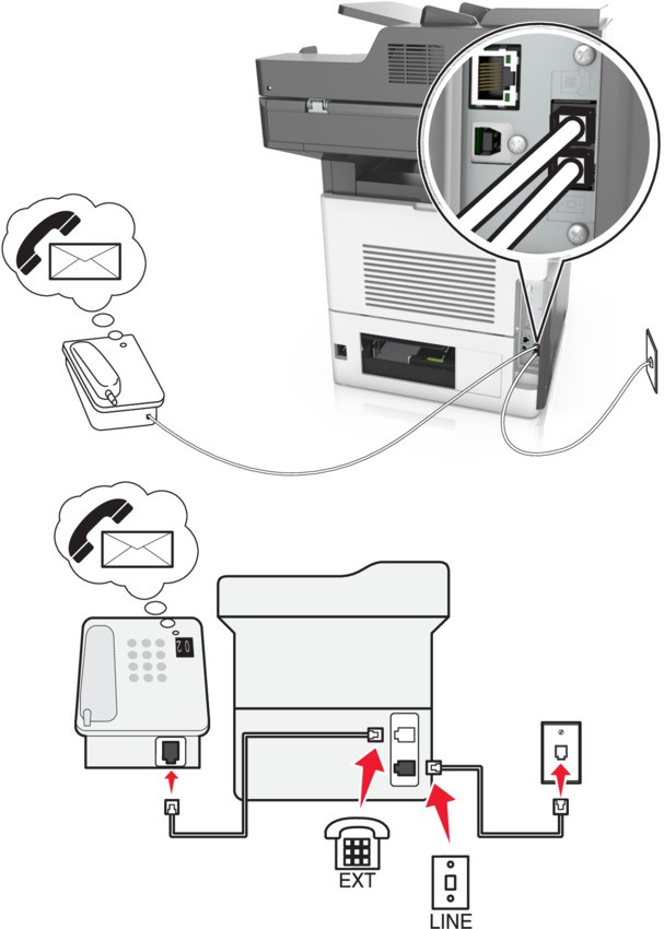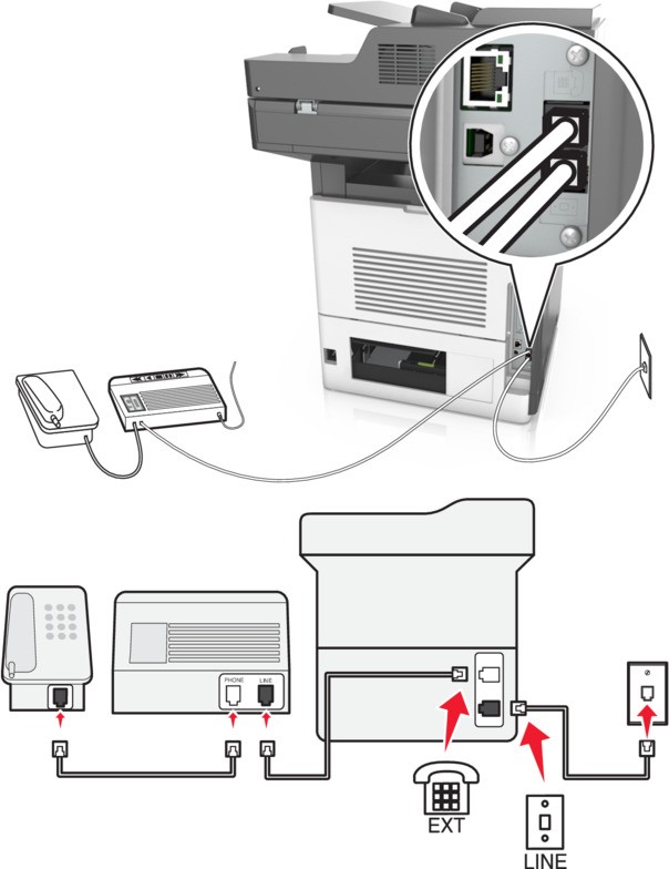 - Telesekreteri, yazıcının telefon bağlantı noktasına takın.