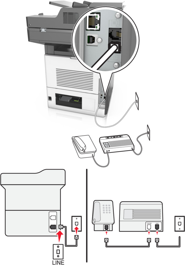 Yazıcınızı doğrudan etkin bir telefon prizine bağlayın veya bir telesekreter ya da sesli posta hizmeti ile hat paylaşın.