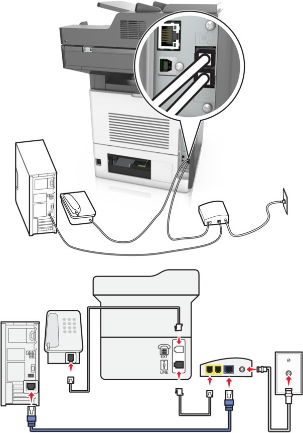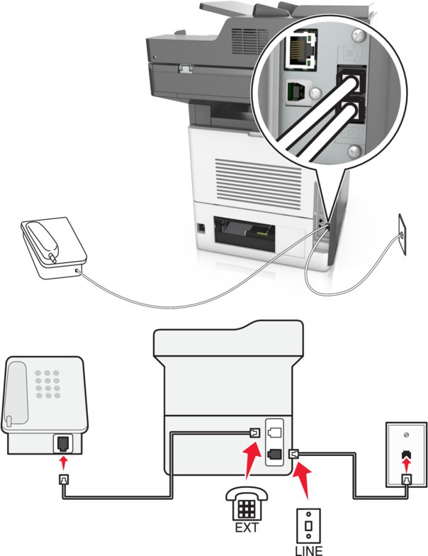 - Analog telefonunuzu yazıcının telefon bağlantı noktasına takın.