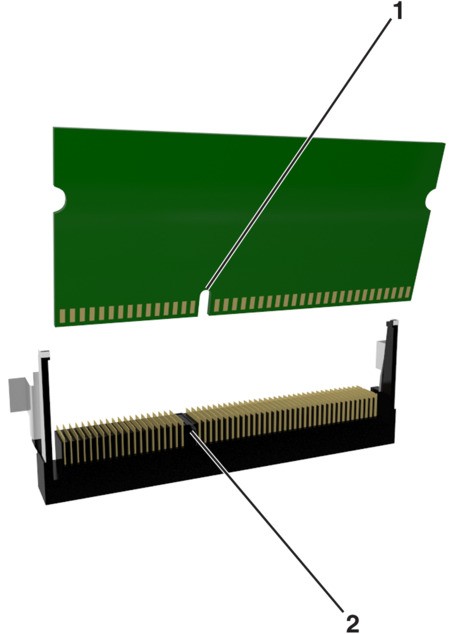 - 打开存储卡包装。不要触摸卡片边缘的接插脚。将存储卡上的槽口 (1) 与接口上的凸脊 (2) 对齐。