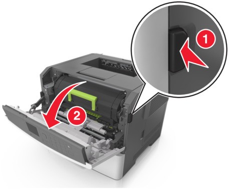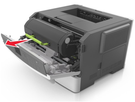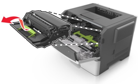 - 抬起绿色手柄,然后从打印机中拔出成像单元。