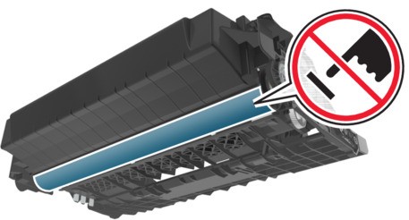 - 移除成像单元上所有的包装材料。不要让成像单元暴露在直射光线下超过 10 分钟。长时间暴露在光线下可能导致打印质量问题。请勿触摸光导鼓。否则会影响以后打印作业的打印质量。