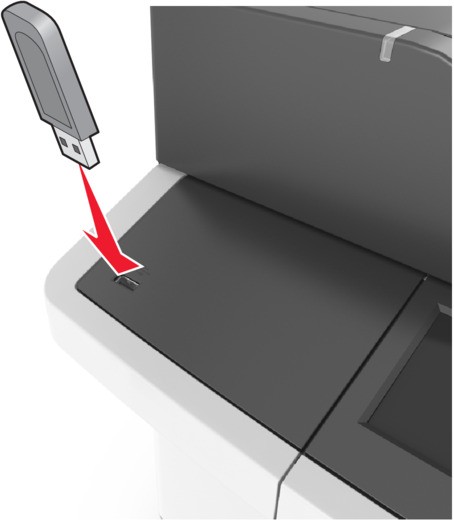 - 如果在打印机需要注意的时候插入闪存驱动器,例如发生卡纸时,则打印机会忽略闪存驱动器。