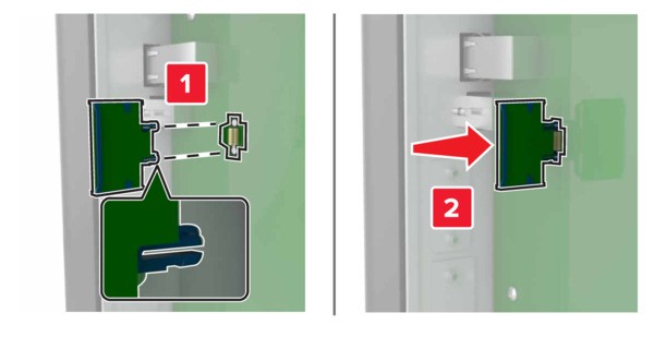 了解如何将可选卡正确插入控制器板以扩展打印机的内存和作业存储容量。